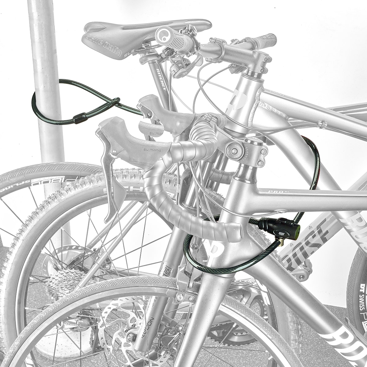Unser ROSE LOCKMAXX KL 180-K Schlaufenkabelschloss besteht aus einem hochwertigen, verdrehten Stahlkabel mit robuster PVC-Ummantelung. Das Loop Cable verfügt sowohl über einen Schließzylinder als auch eine Kabelschlaufe. Damit und mit seiner Länge von ca. 180 cm lässt es sich flexibel einsetzen, um z.B. die Laufräder zu sichern, oder dein Fahrrad auch noch am Zaun anzuschließen. Auch dein Helm oder deine Seitentaschen lassen sich mit dem LOCKMAXX KL 180-K zuverlässig gegen unberechtigte Mitnahme sichern.